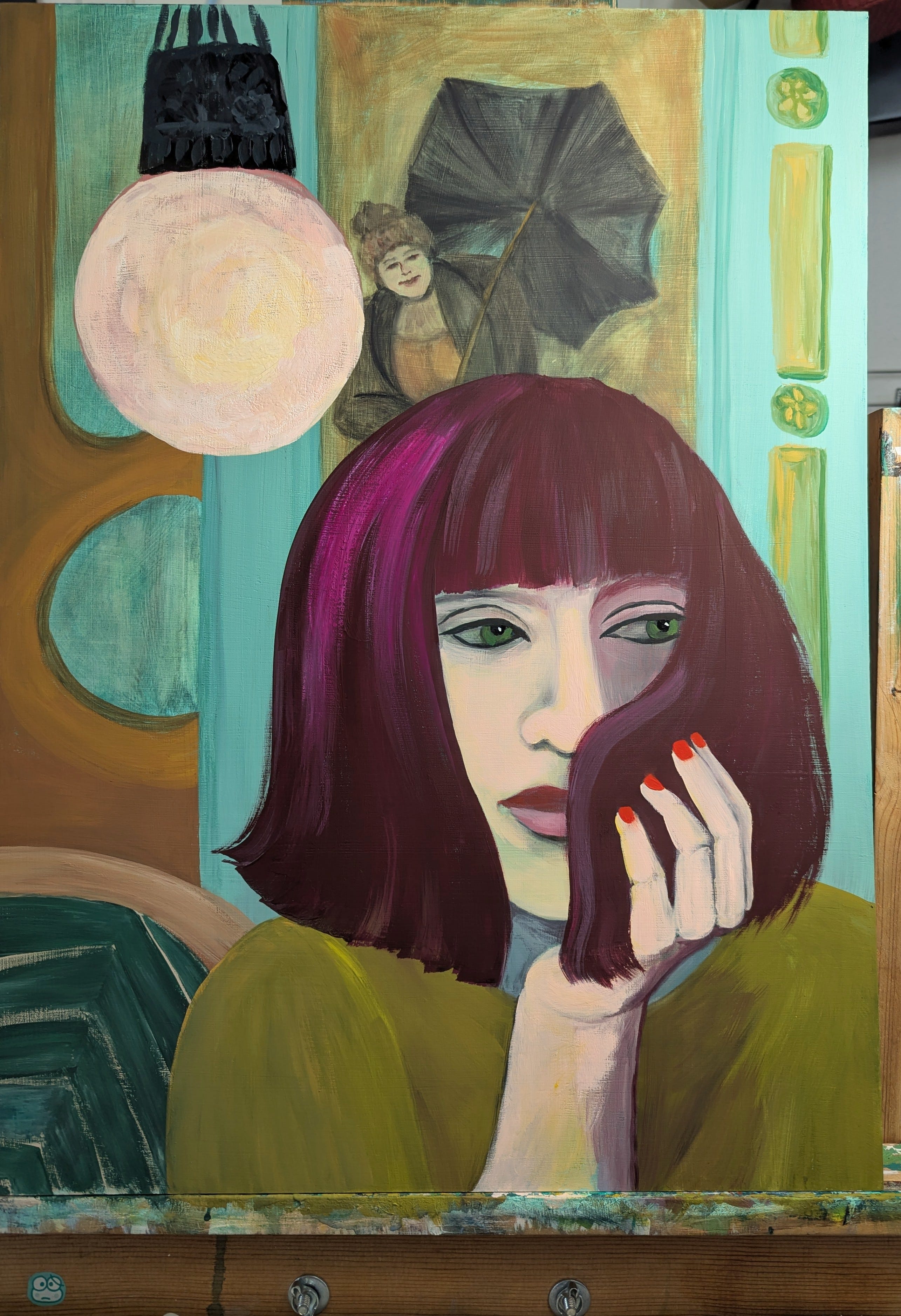 Part of my dissatisfaction is frustration with my materials. Acrylics dry really fast, which has it’s pros and cons, so I’ve decided to try my hand at oil painting again. Oils, as you may know, take forever to dry, so they also have their pros and cons. But I’m playing around with that and seeing what happens. I haven’t painted in oils since my art school days, back in 1997 or so. So. I’m also re-teaching myself with water-soluble oil paint this time, just to throw myself another unneeded curveball. So it’s going about as well as you can imagine!