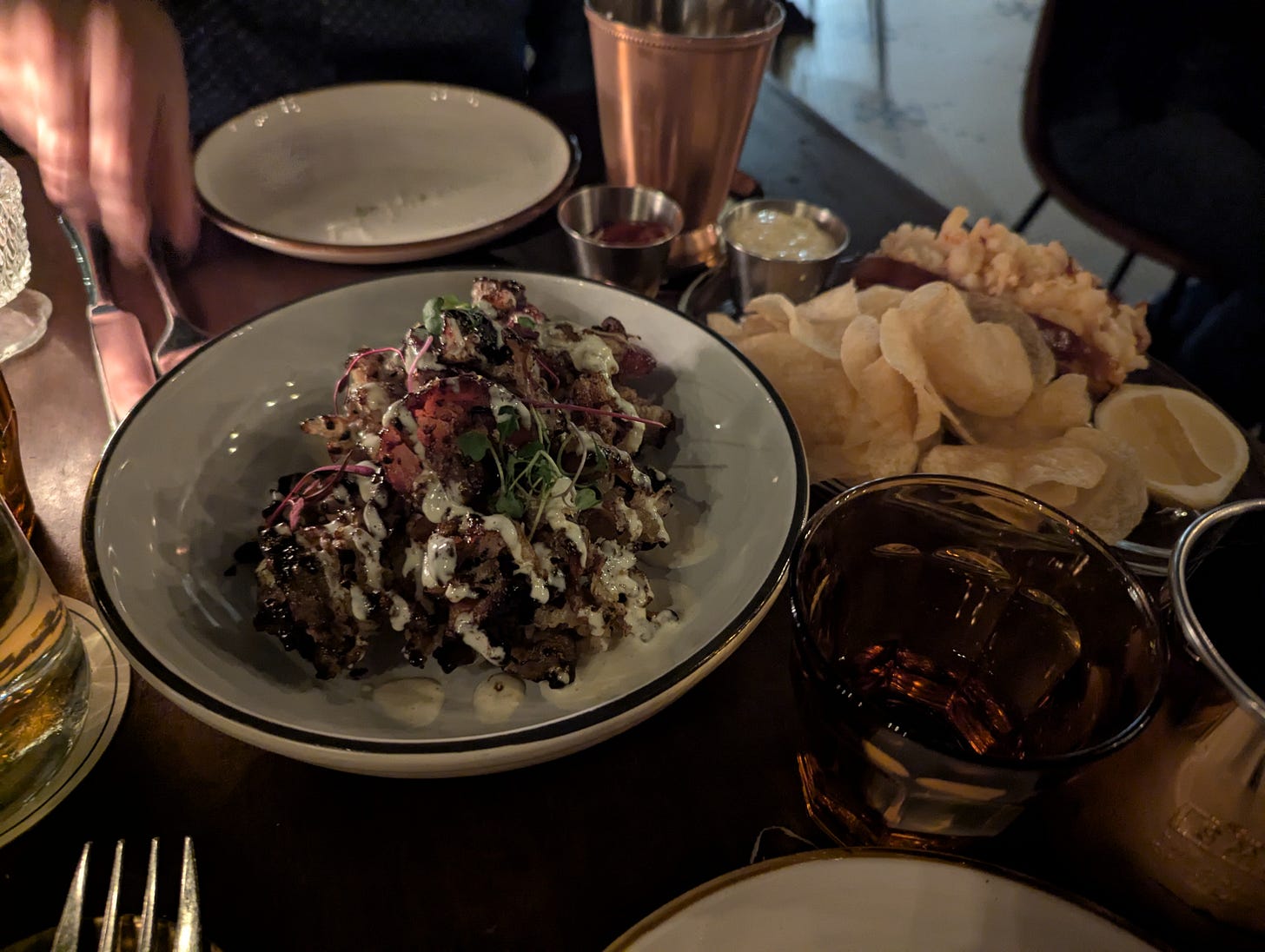 Happy November, friends! It’s finally sweater weather (sometimes) here in Austin, and I’m loving it. Yesterday I turned 49 (I still can’t quite believe it). It’s strange, and I imagine this feeling is only going to grow weirder each year. I celebrated over several days, starting the day before Halloween, with a dinner & movie date with Patrick. We went to a fab place we’d never been to before, Cedar Tavern, and shared the most amazing tempura oyster mushrooms with black garlic chimichurri & horseradish aioli.